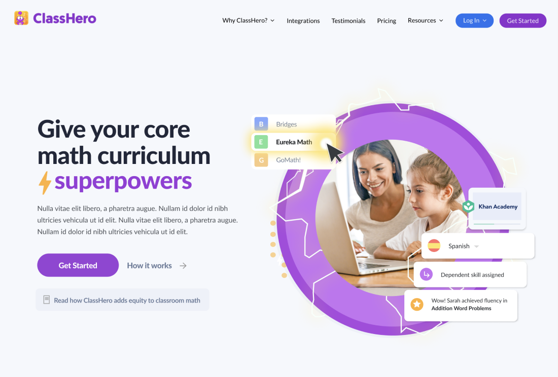 In 2017 I was approached by an investor who had just started working with a new EdTech company called ClassHero. They had done the difficult task of working with a team of educators to produce a Pre-K through Grad 5 math application that intelligently personalized learning for students. They had a 1 page website and UI put together by their development team. I met with the founder and saw the vision he painted me. I originally joined the team as a COO, helping to put structure and tools in place for our development team and projects and then shifted to running product. Together, we've designed and built a brand, and product that does the revolutionary work of simplifying core math curriculum for teachers and students allowing educators with little to no product training to replace paper-practice and supplemental math apps in the classroom with an easy to use and engaging math program.