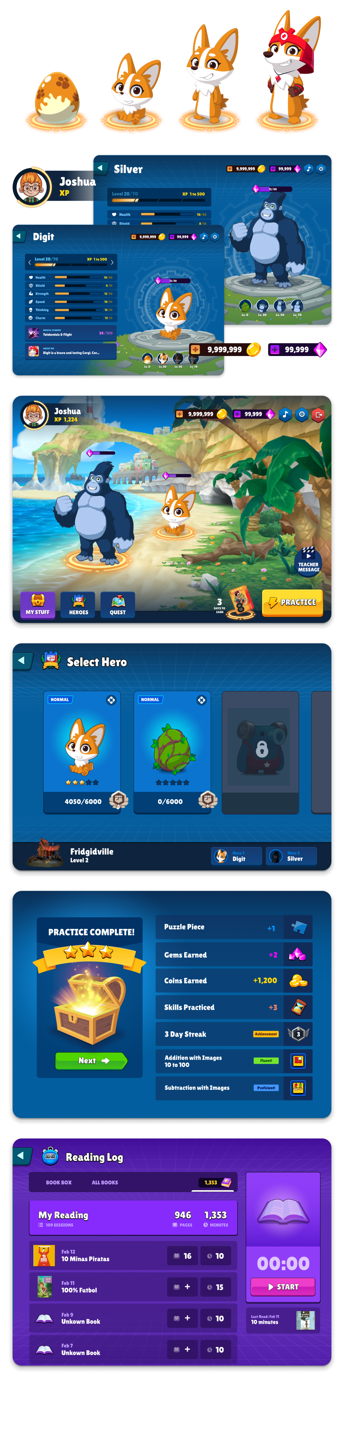 The student app was designed to give students an interactive and ultra-personalized experience. Focused purely on practice, students would earn achievements and unlock characters based on their progress, directly tied to minutes spent practicing. Before the age of AI, this personalization was achieved through custom algorithms that increased or decreased the difficulty based on how the student was doing in real time.